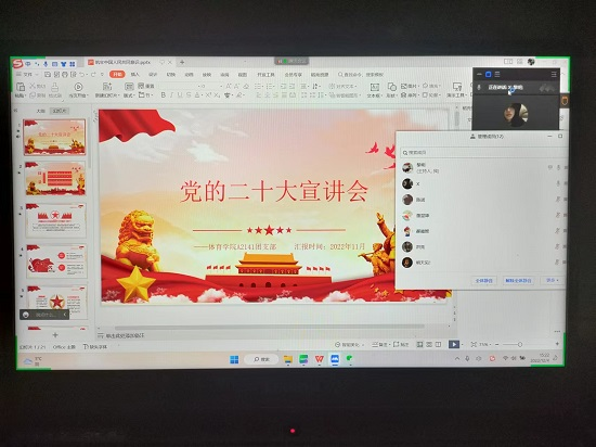 12月4日晚,宣讲团成员深入各团支部进行宣讲,引导广大青年团员把思想统一到党的二十大精神上来。因疫情原因,本次宣讲采用线上方式进行。