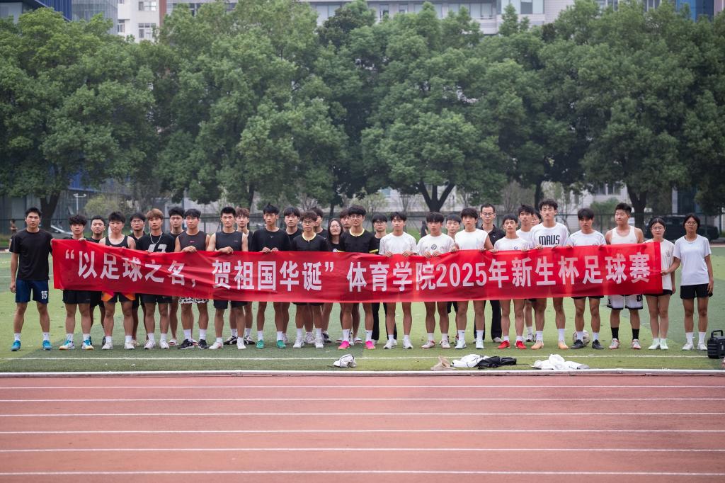 27日上午,骄阳灼灼,绿茵茵的赛场之上,体育学院新生杯足球赛开赛,2025 级新生组成的四支战队身着整齐球衣,精神抖擞如雏鹰振翅,昂首奔赴赛场。传球似流星穿梭,划破赛场沉寂;抢断若猎豹出击,尽显敏捷身姿;射门若惊雷破空,凝聚团队力量——每一个动作都浸透着拼搏的汗水,每一次配合都彰显着协作的精神。场边观众席上,呐喊声、加油声此起彼伏,与赛场上的奔跑身影、跃动身姿交织成最热烈的国庆图景。这不仅是一场酣畅淋漓的足球竞技,更是一堂生动深刻的“爱国教育实践课”:学子们以奔跑的姿态致敬祖国的蓬勃发展,用进球的喜悦礼赞祖国的繁荣昌盛,让 “更快、更高、更强” 的体育精神与 “爱党、爱国、爱校” 的家国情怀在绿茵场上同频共振,绽放耀眼夺目的时代光芒。