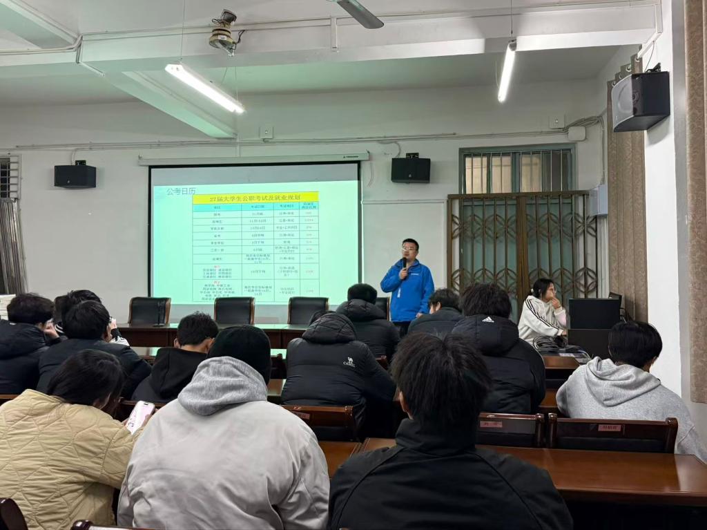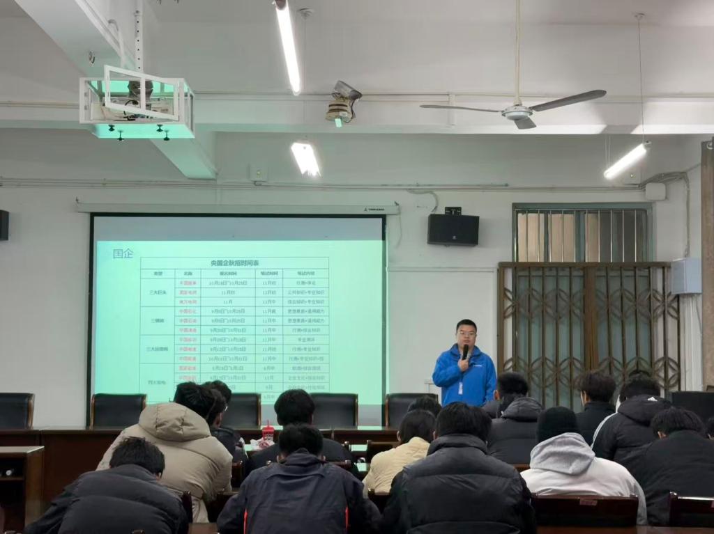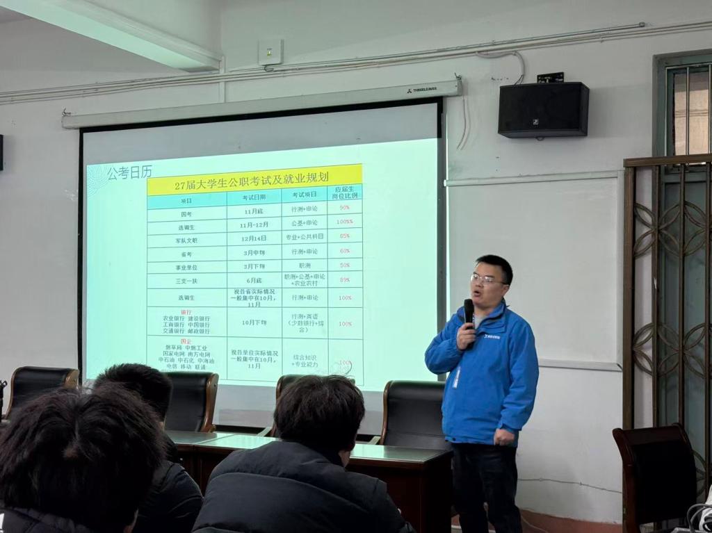 辅导专家为同学们带来题为“本科大学生备考铁饭碗的优势及长远规划”专题讲座,讲座内容聚焦公务员、国有企业、银行系统及事业单位等最新政策和资讯,为学生系统解读行政事业岗位的报考路径与发展前景。