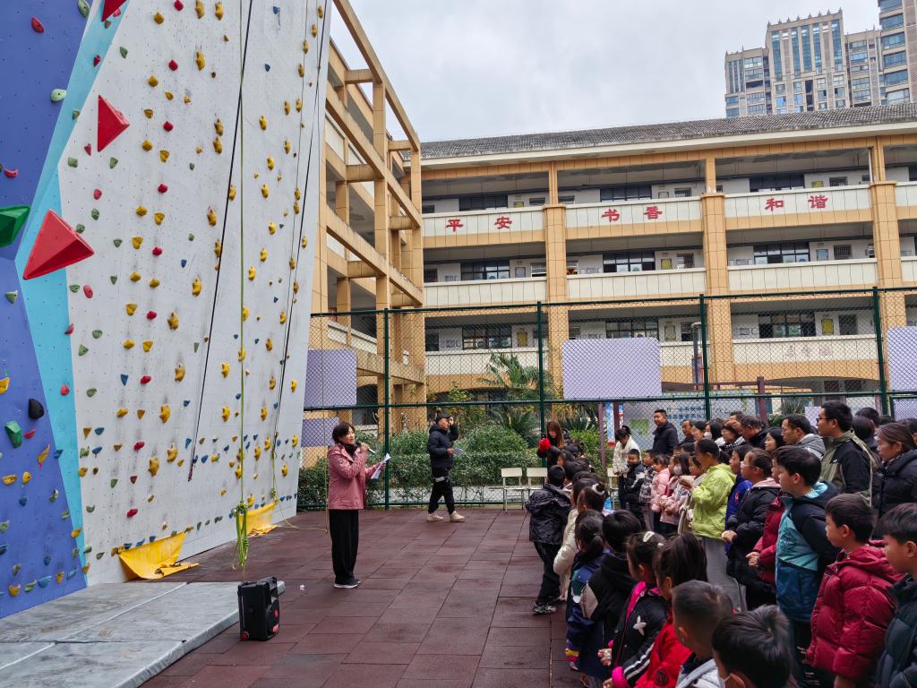 活动当日,瑞昌五小校园内气氛热烈。占玉珍副教授凭借其丰富的专业知识和教学经验,从攀岩运动的文化渊源、健身价值与精神内核出发,为在场的家长朋友们进行了深入浅出的讲解。她指出,攀岩不仅是挑战体能、锻炼协调性的体育活动,更是培养专注力、意志力与策略思维的重要载体,其“向上攀登、克服恐惧、信任协作”的核心精神,与青少年成长过程中所需的核心素养高度契合。