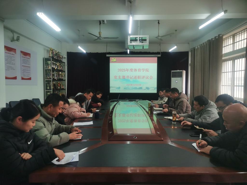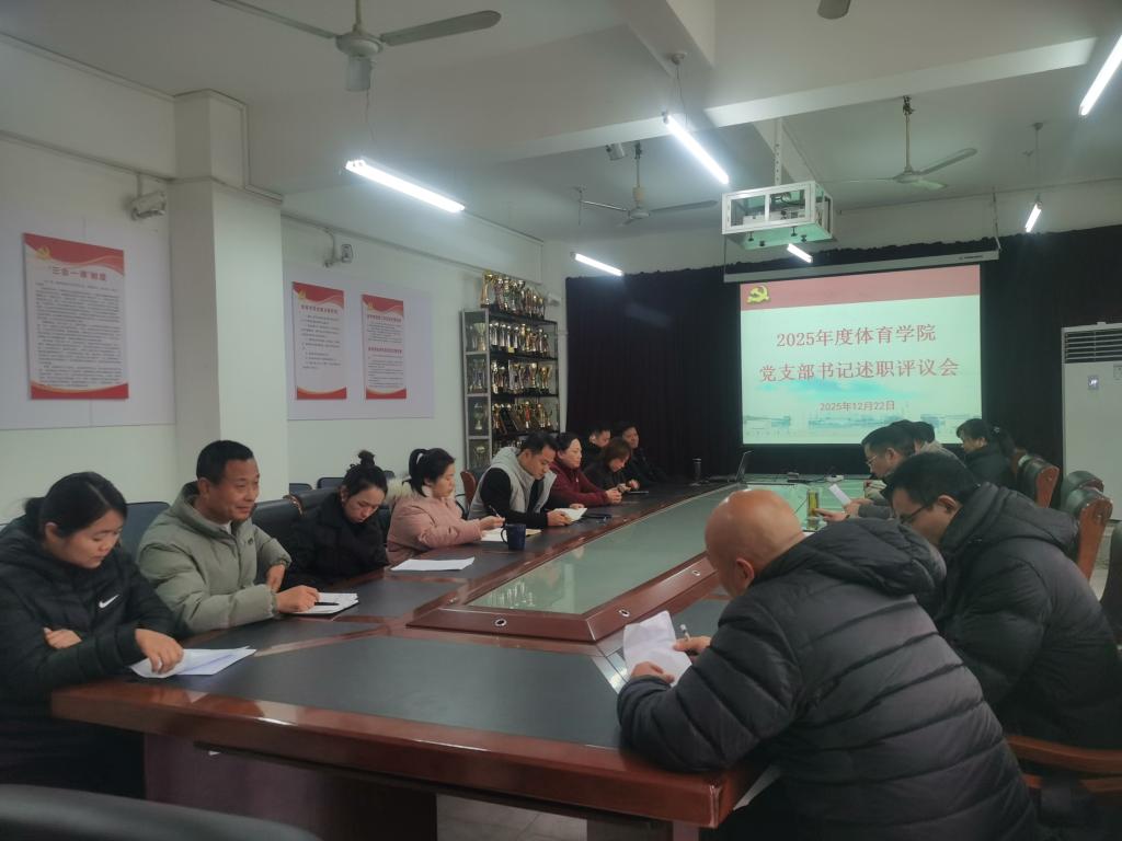 12月22日下午,体育学院在向学楼311会议室召开2025年度党支部书记述职评议会。学院党委班子成员、各党支部书记、党支部委员、师生代表参加了会议,院党委书记付和忠主持会议。