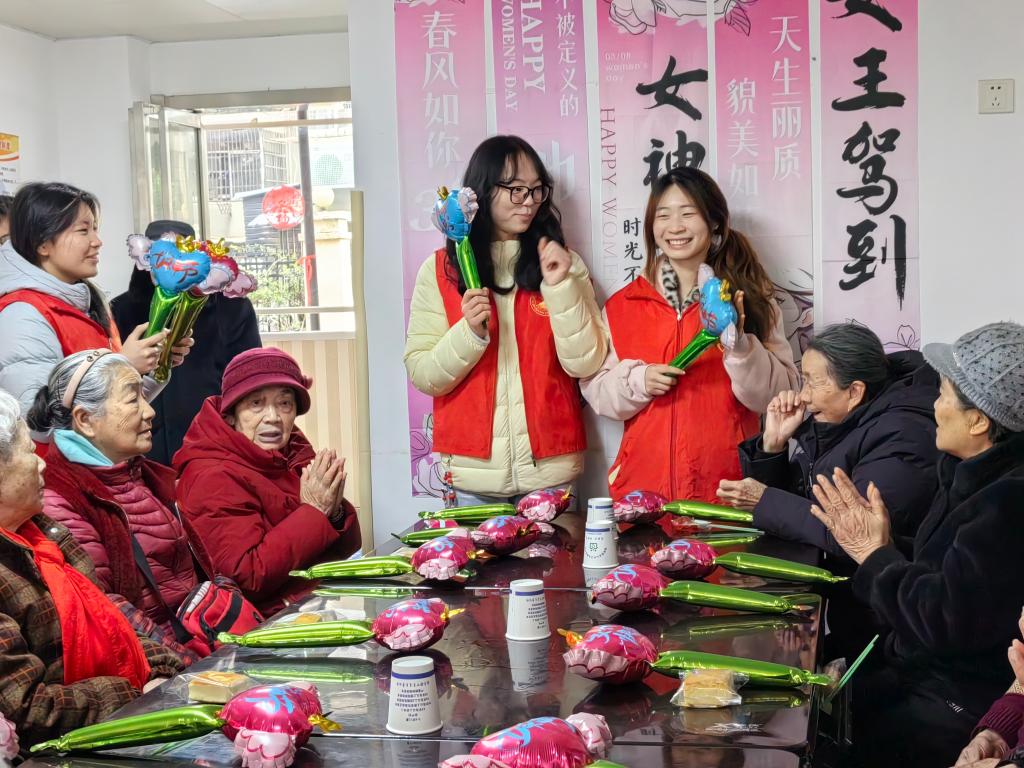 为庆祝“三八”国际妇女节,3月8日下午,体育学院组织青年志愿者服务队到浔阳区长天松康丁官路养老院,开展了一场以“情暖三八,爱润桑榆”为主题的温馨志愿服务活动,用青春之力为养老院的奶奶们送上一份特殊的节日温暖。