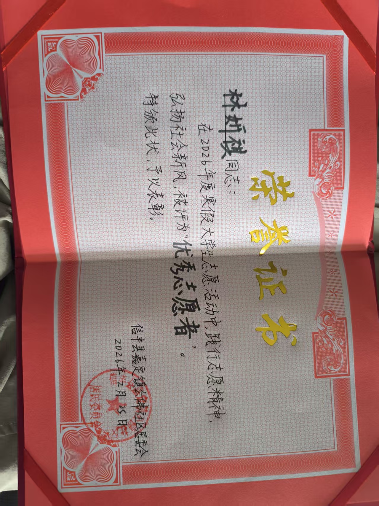 在信丰县嘉定镇公佛社区,林妍祺主动加入社区志愿服务队,参与消防安全排查、环境整治等工作。她身着志愿红马甲,走进社区周边小区,仔细检查楼道灭火器的压力值、有效期,排查消防通道堵塞隐患,向居民普及冬季防火知识。“作为体育专业学生,我们更懂得‘安全’二字的分量,能为家乡筑牢安全防线,是一件很有意义的事。” 林妍祺说。此外,她还协助社区开展文明宣传、政策解读等工作,用耐心和细心服务邻里,得到了社区居民的一致认可,被评为 “优秀志愿者”。