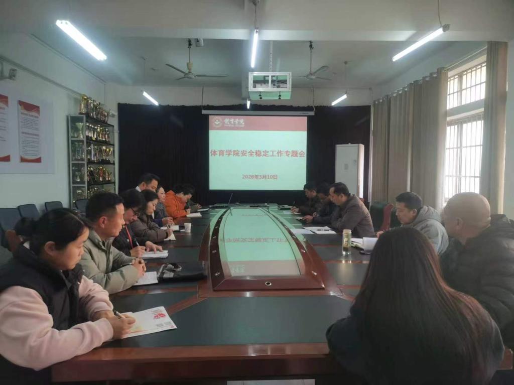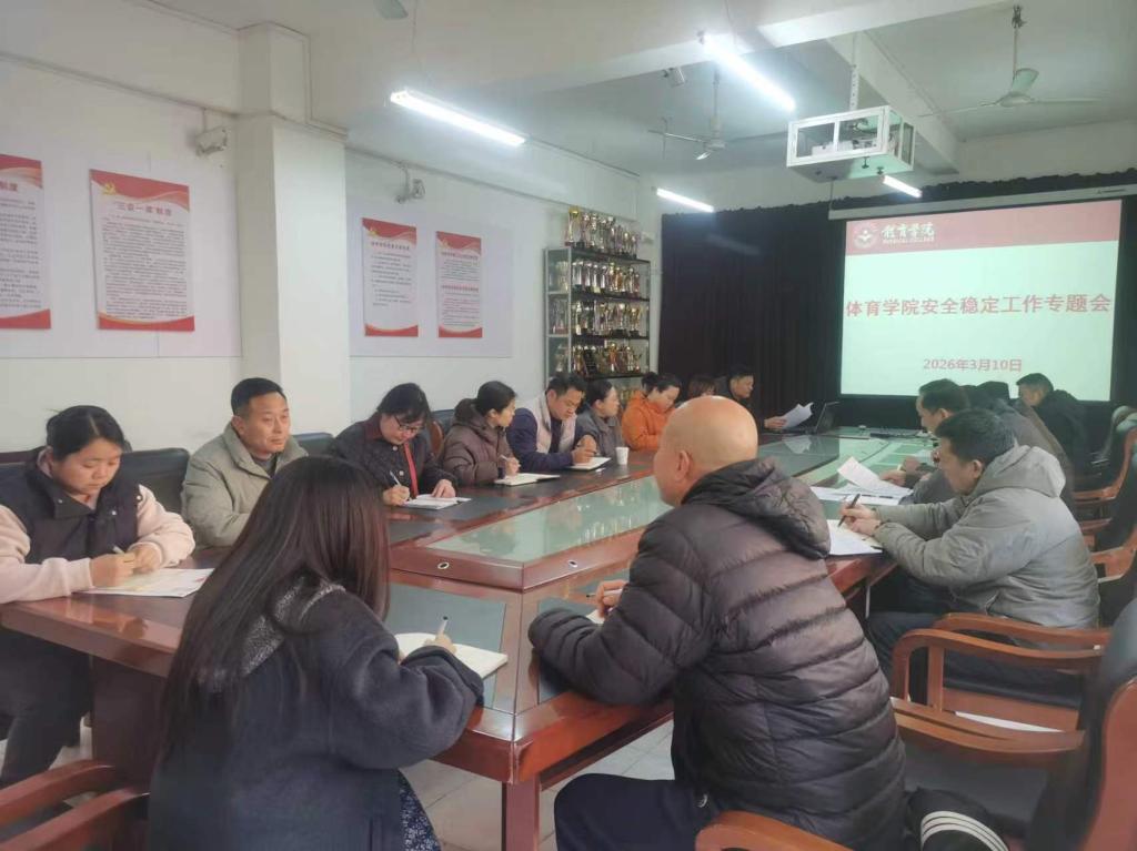 为深入贯彻落实学校安全稳定工作指示精神,切实维护校园和谐稳定,3月10日上午,体育学院在向学楼311会议室召开安全稳定工作专题会。学院领导、科室负责人、教研室主任参加会议,会议由院党委书记宋涛主持。