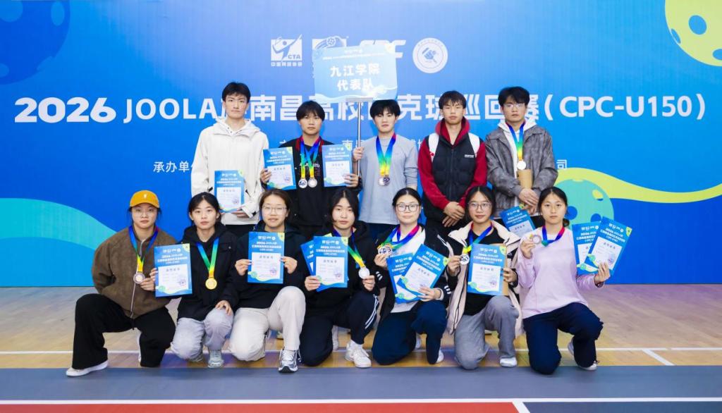 2026年3月28日,2026“JOOLA杯”江西南昌高校匹克球巡回赛(CPC-U150)在南昌圆满落下帷幕。九江学院匹克球队参加了本次比赛,与来自全国多所高校的精英选手同台竞技,凭借出色的技术水平和顽强的拼搏精神,在五个比赛项目中斩获多项荣誉,充分展现了九院学子积极向上勇于拼搏的精神风貌。
