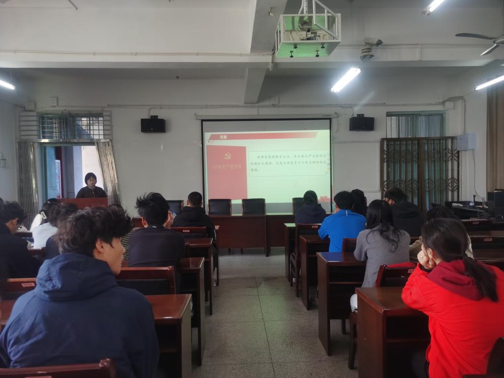 10月23日下午,培训班邀请外国语学院组织员程洁老师讲授题为《党的基本知识》的专题辅导党课。她详细讲述了党的性质、指导思想、根本宗旨、纲领、党员的义务和权利等党的基本知识。