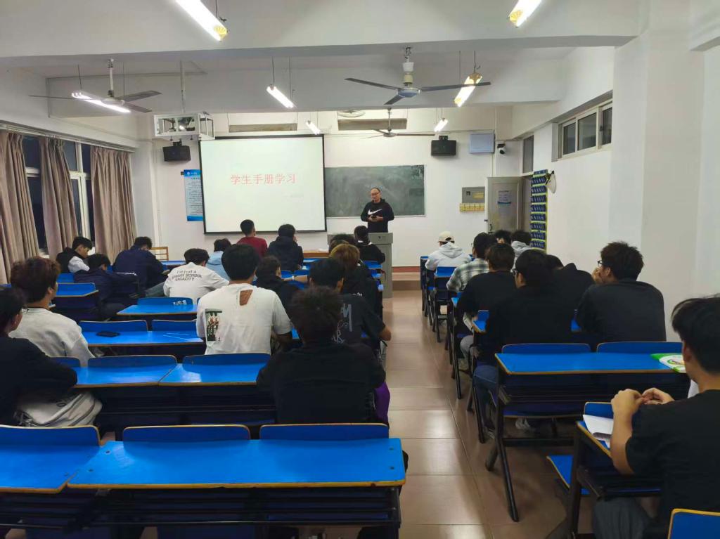 为帮助2025级新生深入了解校规校纪,培育良好的品德修养与行为习惯。10月19日,体育学院组织2025级新生学习《学生手册》主题班会活动。