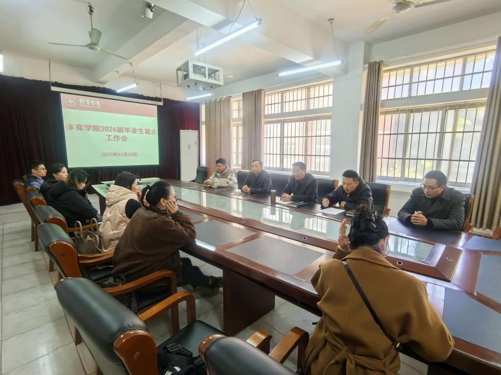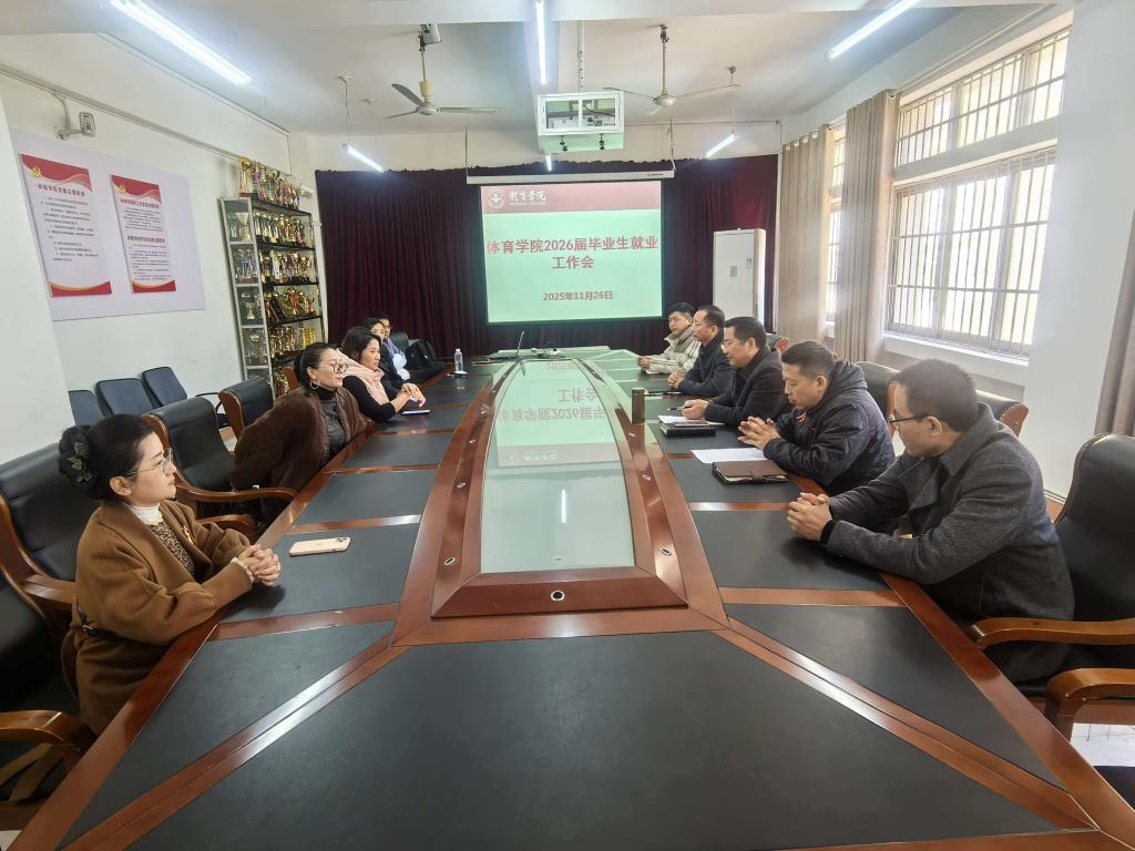 为全面落实学校关于毕业生就业工作的决策部署,动员部署学院2026届毕业生就业工作。11月27日下午,体育学院在向学楼311会议室召开学院2026届毕业生就业工作会,学院领导班子、全体辅导员、毕业班班主任参加会议。