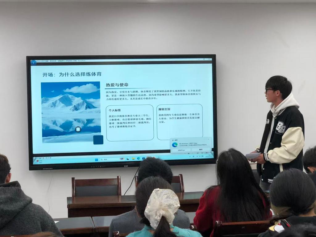 决赛现场,选手们结合体育专业特色与个人优势通过PPT 展示、现场答辩等形式,勾勒自身职业蓝图。有聚焦中小学体育教育,规划成为 “体教融合” 践行者;有瞄准运动康复、赛事运营等新兴领域,展现体育产业多元就业视角;还有选手结合自身特长,提出智能健身指导、体育新媒体运营等跨界发展方案,充分彰显了新时代体育学子的开阔视野与昂扬风采。