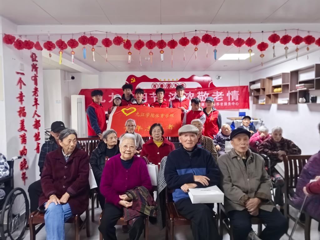 10月29日,在重阳节这个承载着敬老爱老传统的节日里,体育学院组织大学生志愿者走进九江长天松康丁官路养老院,开展“九九重阳节 浓浓敬老情”主题志愿服务活动。